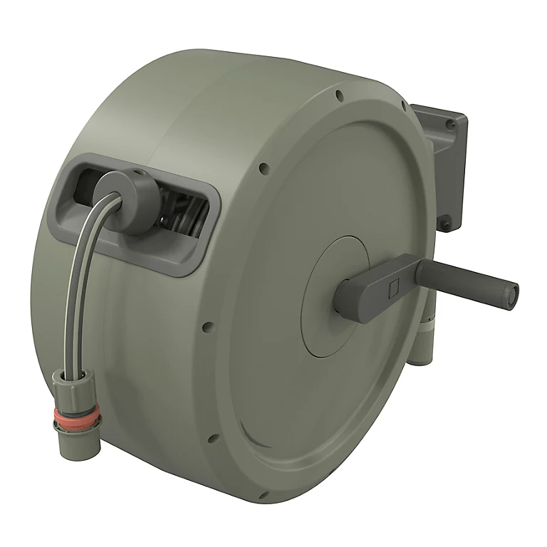 - Ce dévidoir automatique peut être fixé au mur pour gagner de la place dans votre jardin.
