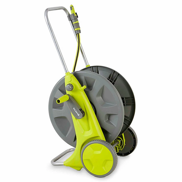 Ce dévidoir Verve sur roues équipé d’un tuyau de 40 mètres est parfait pour arroser de grands espaces verts. Très simple à utiliser, il est livré avec un pistolet de pulvérisation et ses raccords afin d’être prêt à l’emploi. Son tuyau est anti-flexion pour une plus grande résistance dans le temps. Toujours fermer la source d’eau (robinet) après utilisation Nettoyer le produit à l’aide d’un chiffon doux légèrement humide Vider avant que le temps ne change et ne pas laisser le produit sous pression sans surveillance. Pour éviter les dommages causés par le gel, ranger le produit dans un endroit sec en hiver Vider avant que le temps ne change et ne pas laisser le produit sous pression sans surveillance. Pour éviter les dommages causés par le gel, ranger le produit dans un endroit sec en hiver ISO9001ISO9001Ne dirigez jamais le jet d’eau vers des équipements électriques, des personnes ou des animauxNe dirigez jamais le jet d’eau vers des équipements électriques, des personnes ou des animaux