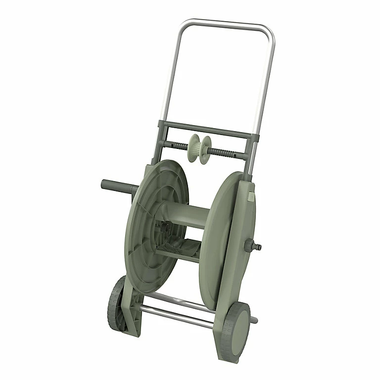 - Ce dévidoir sur roues est autoportant ; vous pouvez donc le déplacer dans votre jardin quand vous en avez besoin.