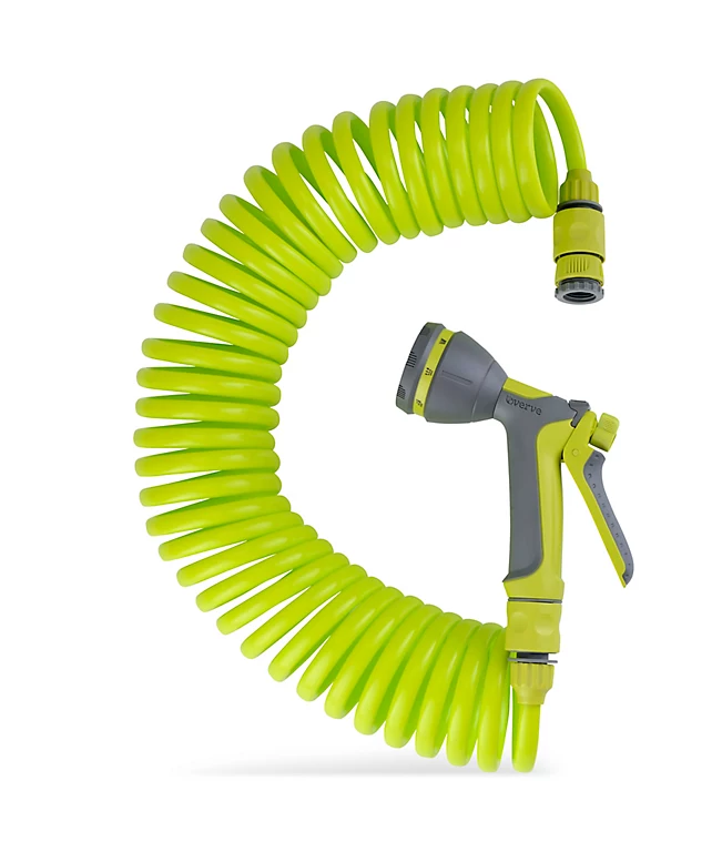 - Facilité d’application : Le tuyau s’enroule facilement, la superposition automatique permettant d’éviter les pliures et les torsions. Il se range facilement dans un garage ou un abri de jardin après utilisation