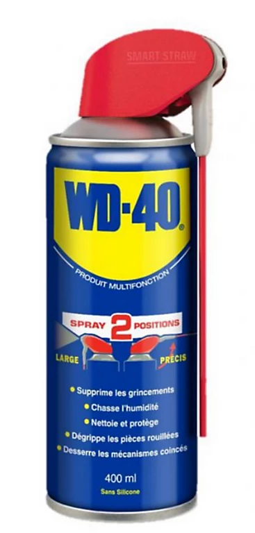 Le produit multifonction WD-40 protège le métal de la rouille et de la corrosion, s’insère dans les parties coincées, repousse l’humidité et lubrifie quasiment tout. Il élimine même la graisse, la saleté et plus encore de la plupart des surfaces.