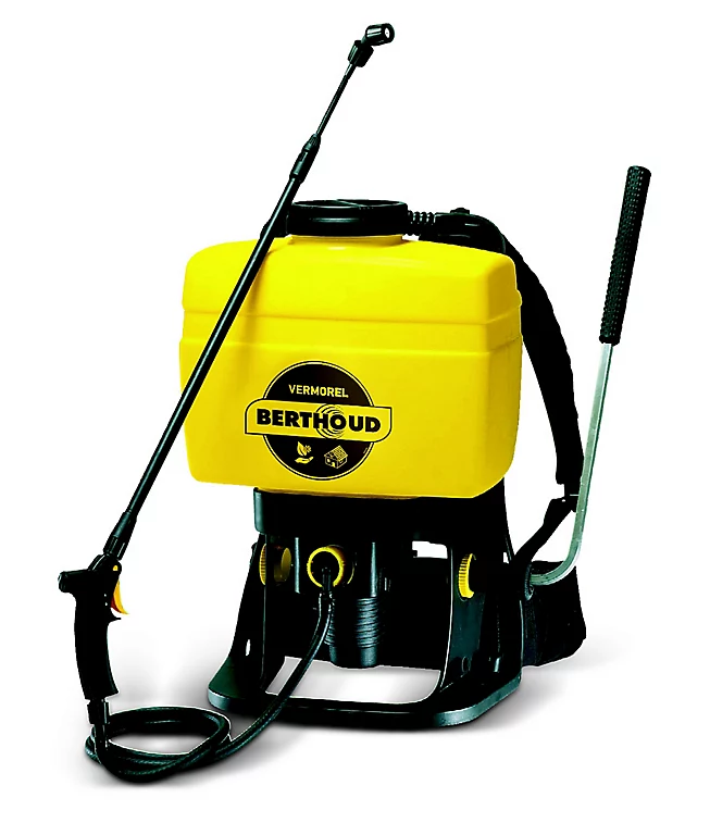 Conçu pour les grands jardins, vergers, maraîchers, serristes… Pour une utilisation intensive des traitements et desherbage. Réservoir d’une capacité de 16L avec un niveau de liquide visible. Armature dorsale ergonomique et équipé du “Portage Santé Utra Confort”. Levier de pompage réversible gauchers/droitiers et réglable en toutes positions pour s’adapter à la morphologie de chaque utilisateur. Pompe à membrane et à piston curviligne haute performances. Limiteur de pression réglable de 0 à 5 bars. Poignée de lance ergonomique type PROFILE. Lance téléscopique composite à haute résistance mécanique et chimique de 60 à 100cm. Porte buse universel réglable équipé d’une buse à turbulence 15/10è, une buse à jet plat type “PINCEAU” et une buse à jet plat type “MIROIR”.