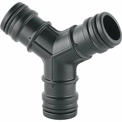 Raccord en Y grand débit.Dimensions : 3 x 10 x 14,5cm.
