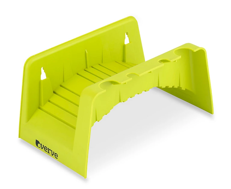 - Se fixe facilement aux murs, aux clôtures ou aux poteaux, pour un rangement net des tuyaux d’arrosage. Les arroseurs et pistolets peuvent être accrochés dans les compartiments de rangement situés sous le crochet
